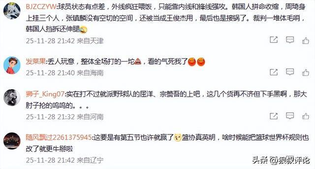 球員狀態(tài)有點(diǎn)差,外線瘋狂喂飯,只能靠內(nèi)線和鋒線強(qiáng)攻。韓國人拼命收縮,周琦身上掛三個(gè)人,張鎮(zhèn)麟沒有空切的空間,還被當(dāng)成王俊杰用,最后也是接鍋了。裁判一堆體毛哨,韓國人擋拆還伸腿。