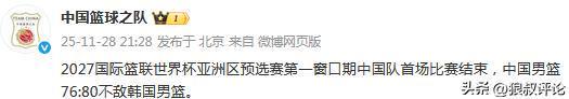 中國籃球之隊(duì)賽后發(fā)文:2027國際籃聯(lián)世界杯亞洲區(qū)預(yù)選賽第一窗口期中國隊(duì)首場比賽結(jié)束,中國男籃76:80不敵韓國男籃。